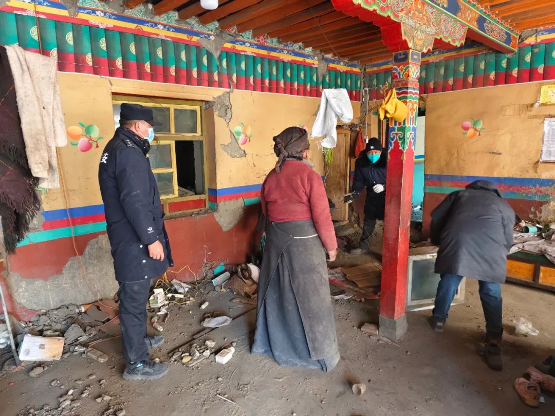 在拉孜縣芒普鄉、查務鄉、拉孜鎮、曲下鎮等地震重災區
