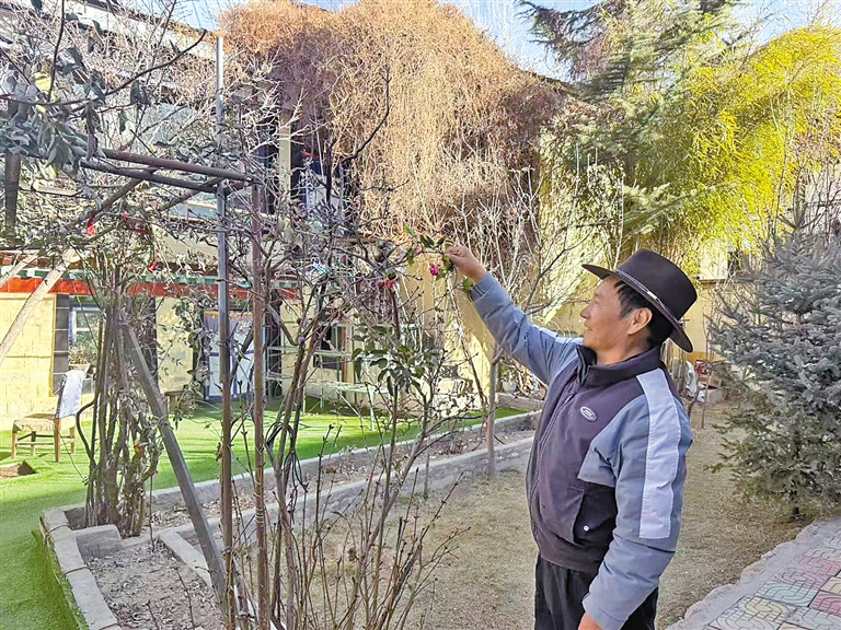拉薩市城關區慈覺林村村民次頓珠在清理院子里的月季樹枝。記者 文鳳 攝