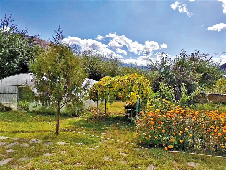 林芝市巴宜區米瑞鄉麥娘麥村一戶村民的庭院綠化環境。記者 劉楓 攝