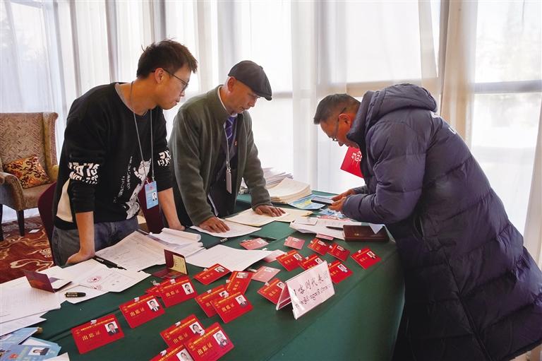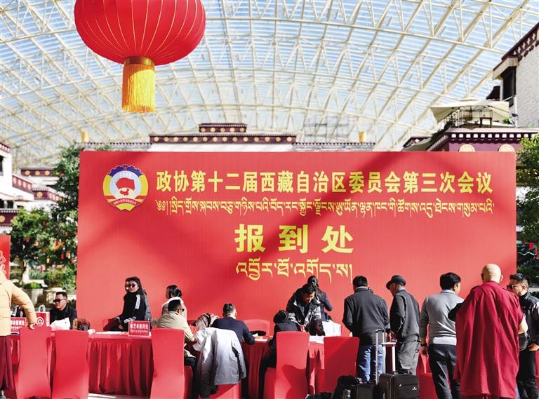 1月16日,參加自治區政協十二屆三次會議的委員向大會報到。記者 貢曲羅杰 攝