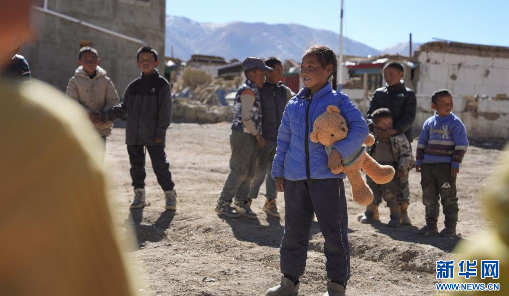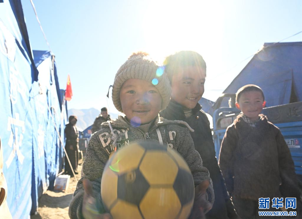 1月11日,薩迦縣麻布加鄉普村安置點的小朋友在玩球。新華社記者 李響 攝