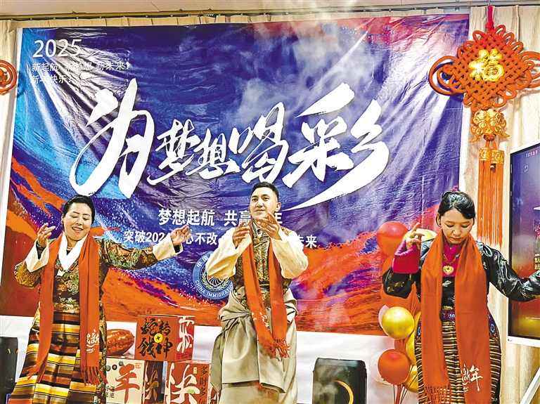 日喀則市亞東出入境邊防檢查站開展以“夢想起航 共贏蛇年”為主題的春節聯歡會。記者 王莉 通訊員 許鵬飛 攝