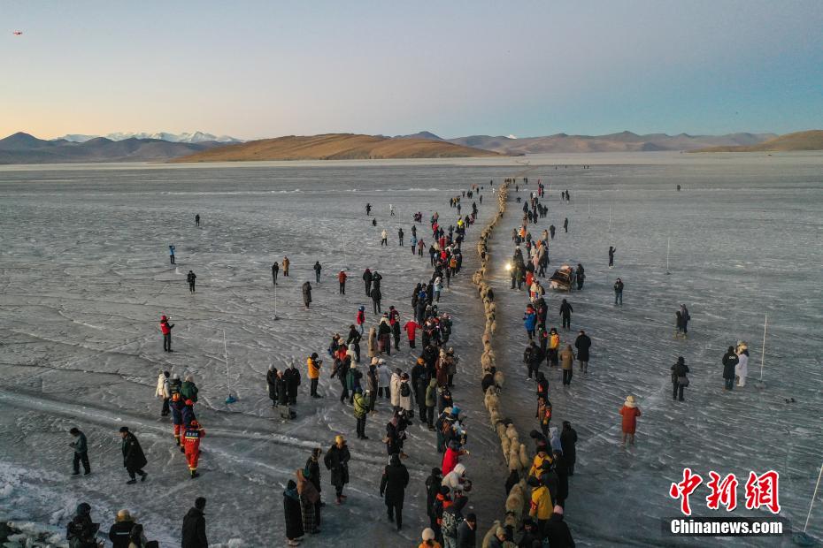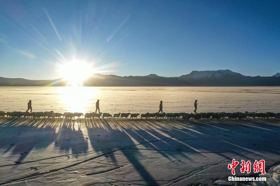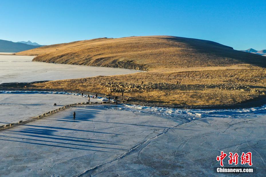 西藏普莫雍錯迎來冰上趕羊“盛宴”