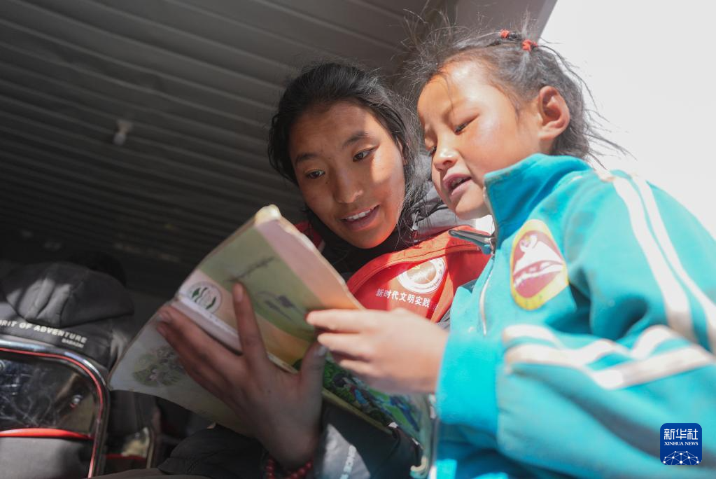 1月25日,在定日縣曲洛鄉熱木青村安置點,大學生志愿者在安置點在給孩子們輔導功課。新華社記者 晉美多吉 攝