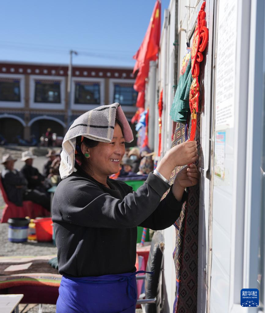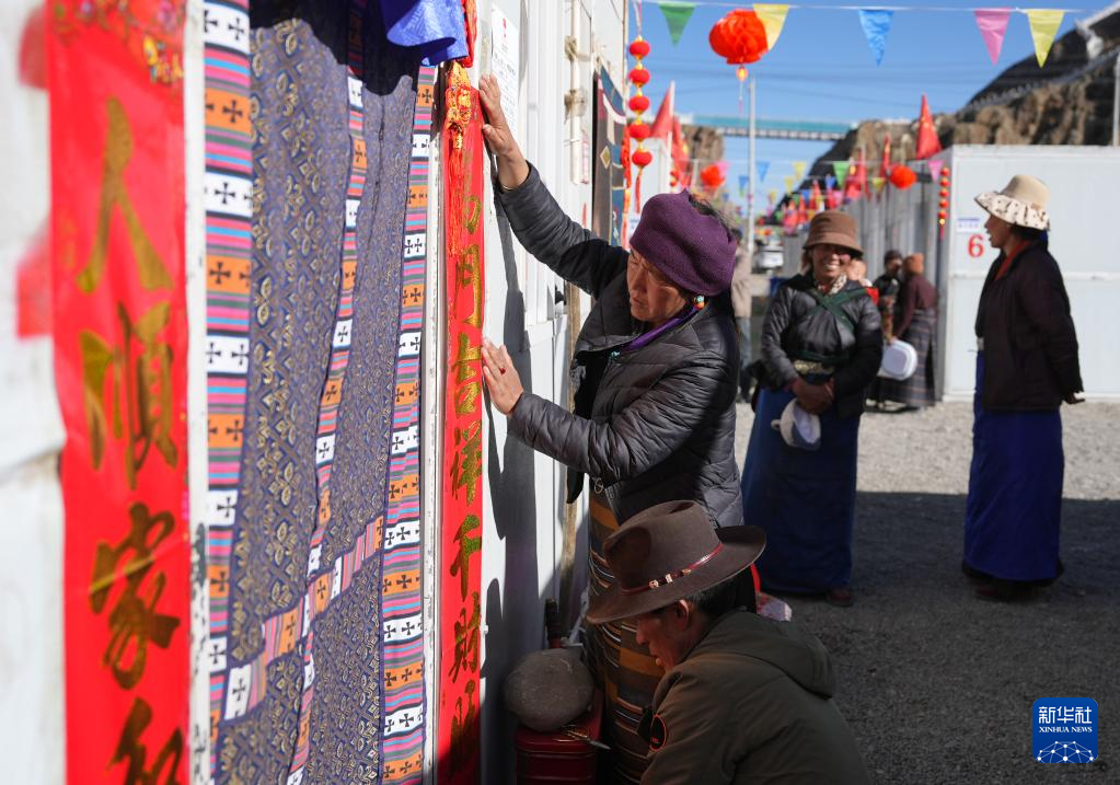 1月26日,拉孜縣吉如村安置點群眾在掛吉祥結。新華社記者 晉美多吉 攝