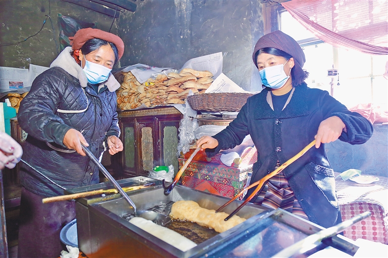 旦索朗一家,在每年藏歷新年前夕,都會開啟一年中最為繁忙的時光——經營“卡賽”生意。旦索朗回憶往昔,感慨萬千:“小時候過年,炸‘卡賽’是家家戶戶的頭等大事,整個村子都彌漫著誘人的香氣,那是新年專屬的味道。如今,時代在變遷,人們的生活方式也發生了改變,越來越多的人選擇購買成品‘卡賽’,這既契合了快節奏的現代生活,也為我們提供了發展的機遇。我們經營‘卡賽’生意已有6年,這期間,靠著誠信經營和對高品質的堅守,生意蒸蒸日上,還帶動了6名村民共同增收,大家一起用雙手創造美好生活?!?/p>