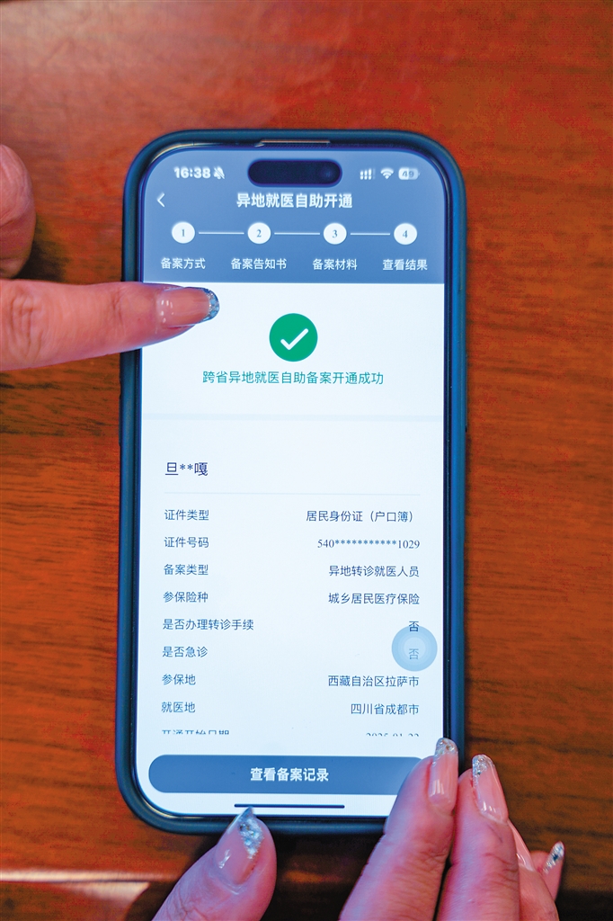 跨省異地就醫自助備案通過手機小程序開通成功。記者 貢曲羅杰 攝