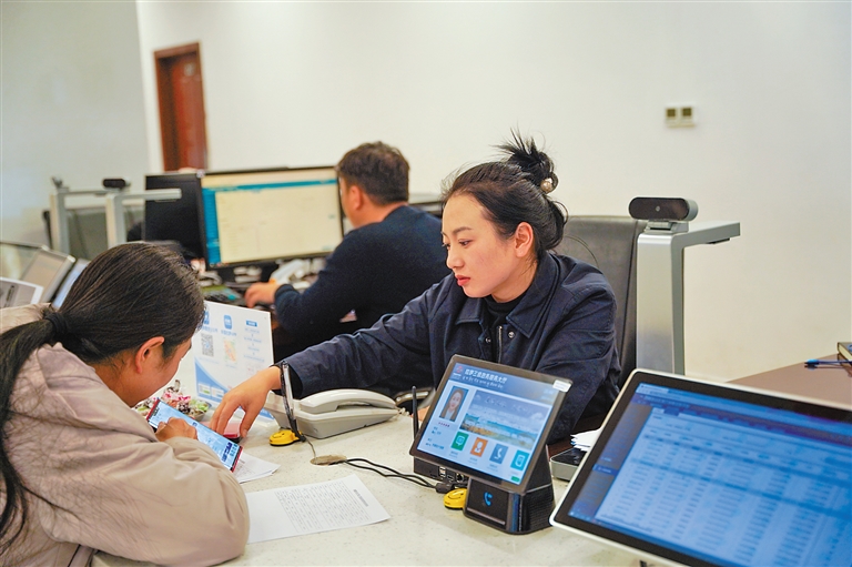 醫保服務大廳工作人員為市民講解業務辦理流程。記者 貢曲羅杰 攝