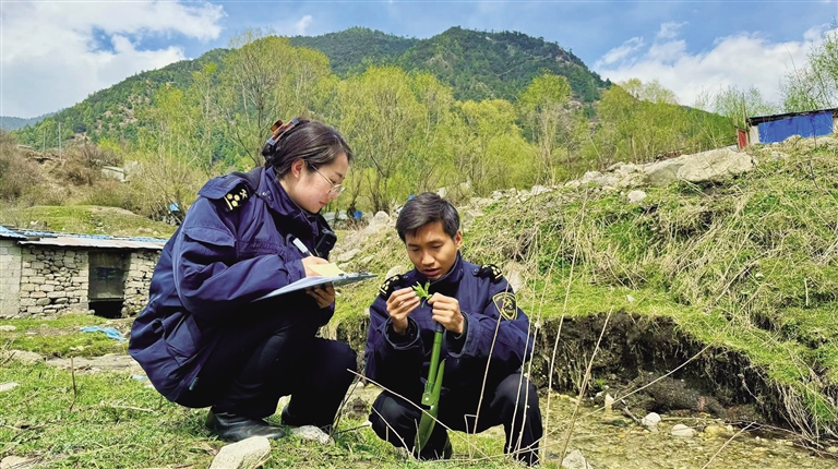 拉薩海關所屬吉隆海關關員開展國門生物安全監測。圖由拉薩海關提供