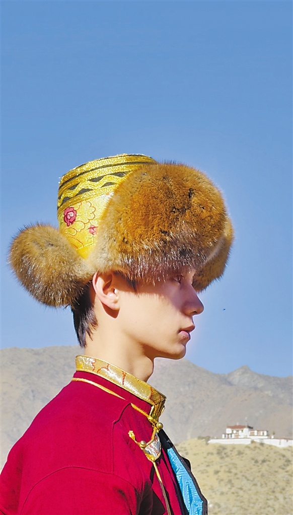 “朗霞”藏語意為氆氌帽,是墨竹工卡縣女性服飾的重要組成部分。這種帽子以黑色氆氌做底,兩側鑲有花邊,后面翹有兩個角,實用又美觀,成為女性展示自身魅力的重要配飾。帽子的裝飾因年齡和身份的不同而有所差異,年輕女孩戴的帽子裝飾較多,花紋圖案豐富,頂上為八瓣花,代表著吉祥八寶(傳統圖案)的數量;成年女性的帽子則少些花俏,更為沉穩;老年婦人的帽子則簡潔大方,透露出歲月的積淀與智慧;而僧尼的帽子則為絳紅色,彰顯著她們的宗教身份與信仰。