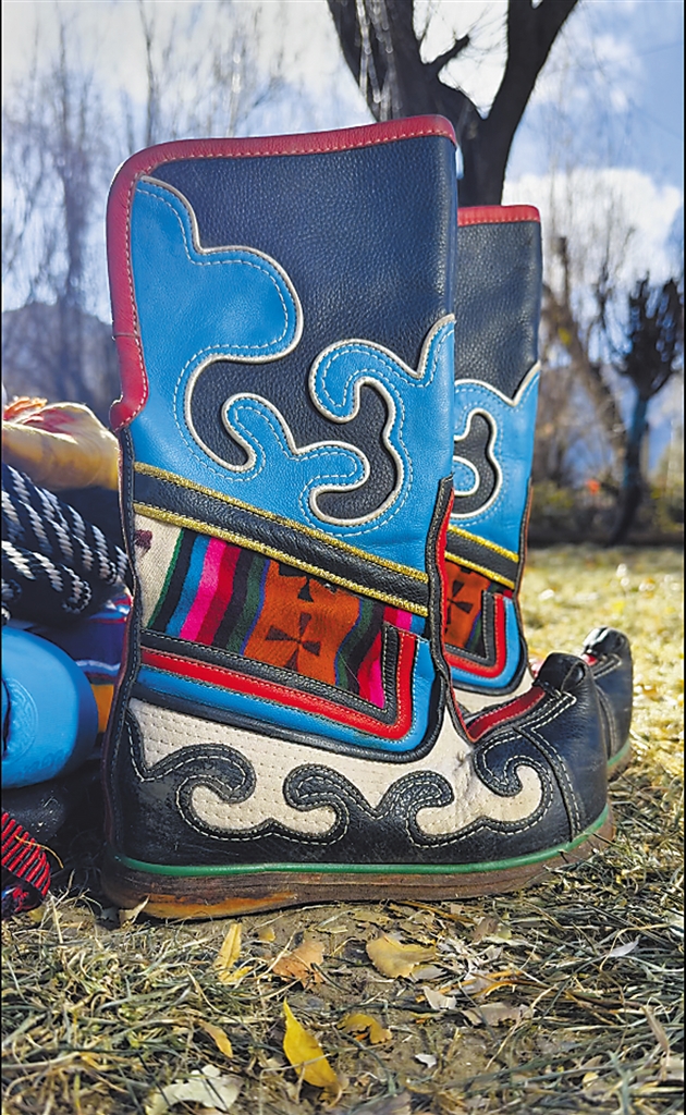 堆龍德慶區覺木隆派藏戲演員表演時穿的藏靴。(圖片均由拉薩市文化和旅游局提供)