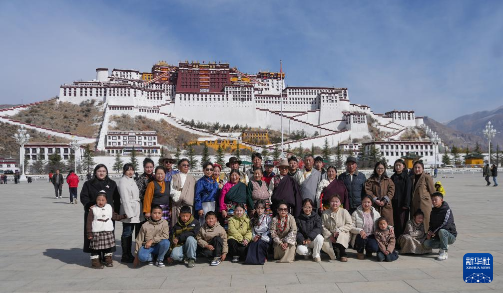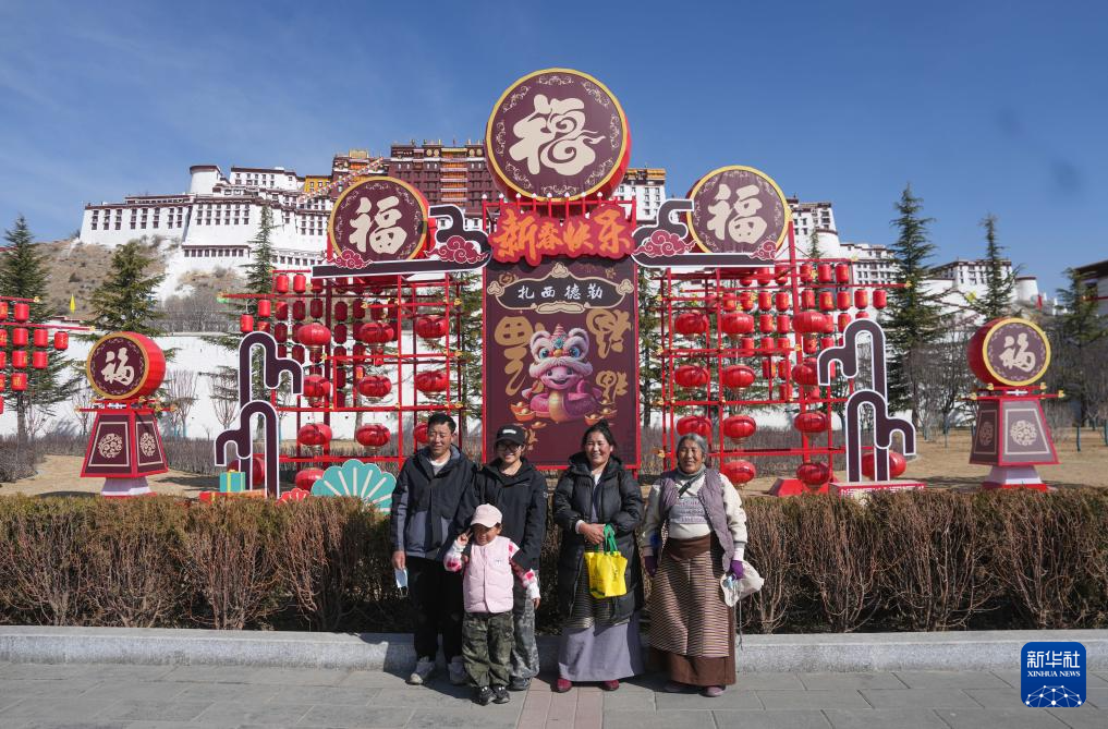 2月28日,來(lái)自西藏那曲市比如縣的一家人在拉薩布達(dá)拉宮前合影留念。新華社記者 晉美多吉 攝