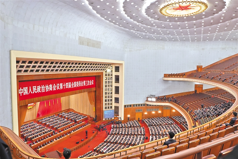 圖為3月10日上午,中國人民政治協商會議第十四屆全國委員會第三次會議在北京人民大會堂閉幕。記者 旦增平措 次旦央吉 攝