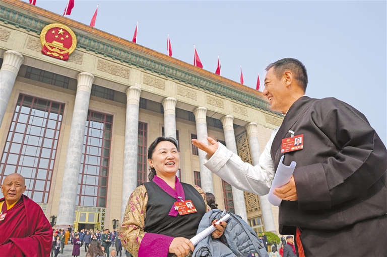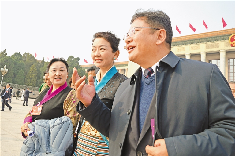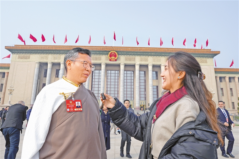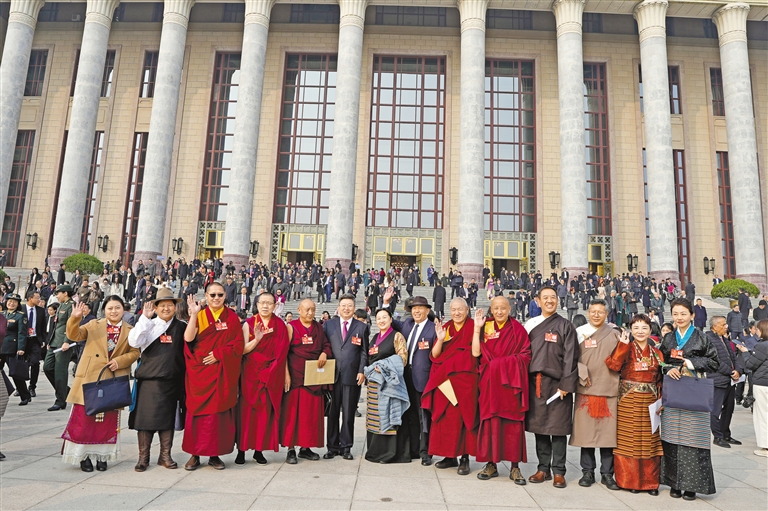 圖為住藏全國政協委員等參會人員在人民大會堂前合影留念。記者 旦增平措 次旦央吉 攝