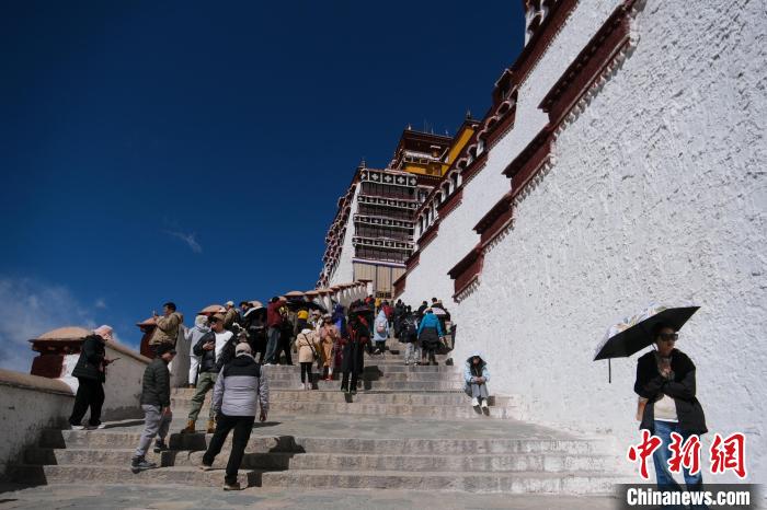 3月18日,參觀游客和朝佛信眾等拾級而上,登高前往布達拉宮。中新社記者 江飛波 攝