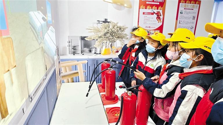圖為學(xué)生們?cè)谌湛t市青少年科學(xué)院接受消防安全教育。記者 馬曉艷 攝