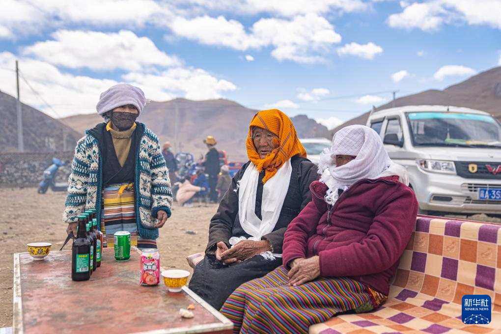 在春耕大典上,白姆老人和鄉親一起跳鍋莊(3月16日攝)。新華社記者 晉美多吉 攝