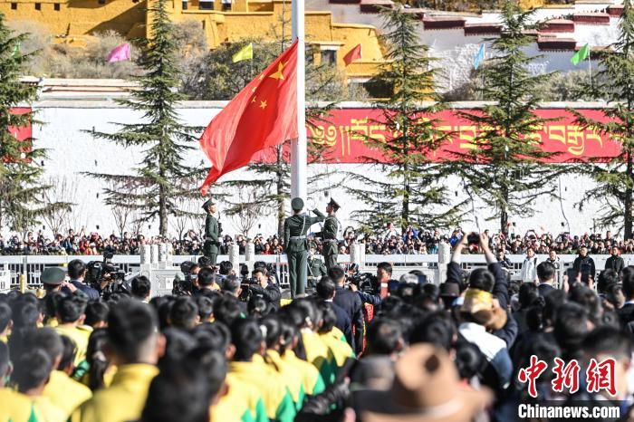 3月28日,“3·28”西藏百萬農奴解放66周年“升國旗、唱國歌”儀式在拉薩舉行。貢嘎來松 攝