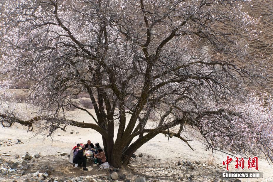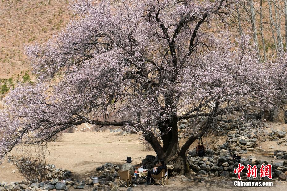 3月下旬,高原已是一片春意。西藏拉薩市區拉薩河南岸慈覺林的古桃樹進入盛花期,3月30日恰逢周末,不少市民游客前往賞花“打卡”,在桃樹下野餐等,享受高原春日風光。圖為3月30日,民眾在拉薩慈覺林桃樹下野餐,享受悠閑時光。江飛波 攝
