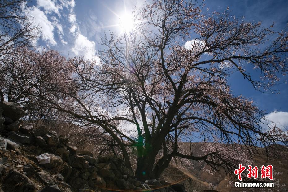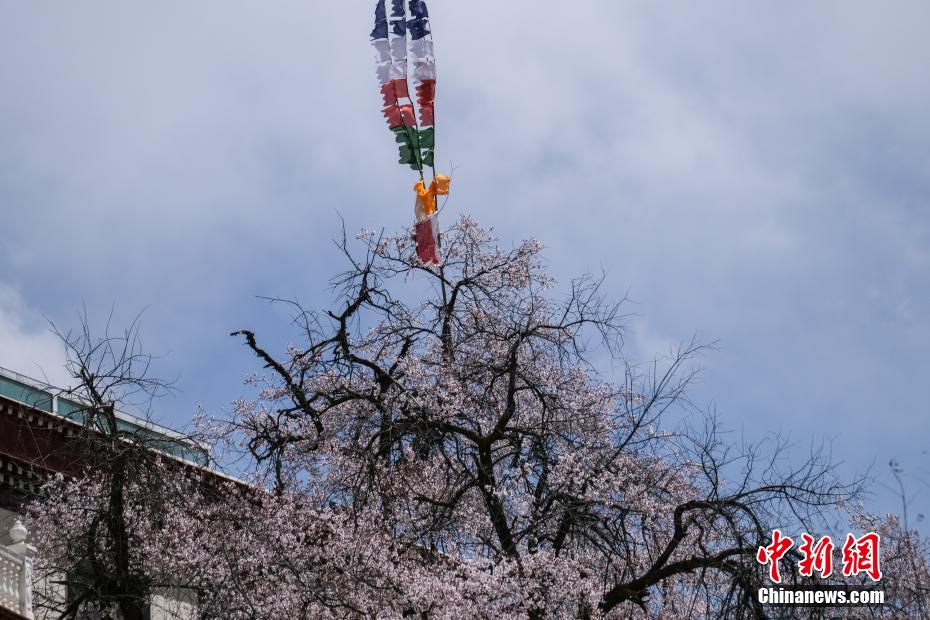 3月下旬,高原已是一片春意。西藏拉薩市區拉薩河南岸慈覺林的古桃樹進入盛花期,3月30日恰逢周末,不少市民游客前往賞花“打卡”,在桃樹下野餐等,享受高原春日風光。圖為3月30日,拉薩慈覺林的桃花。桃樹上是藏族民眾在藏歷新年時綁的經幡。江飛波 攝