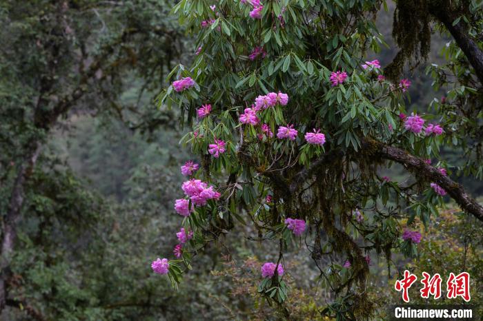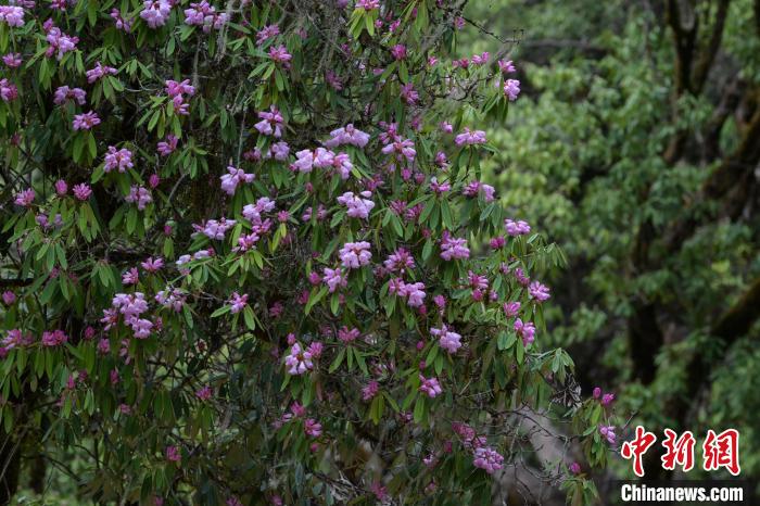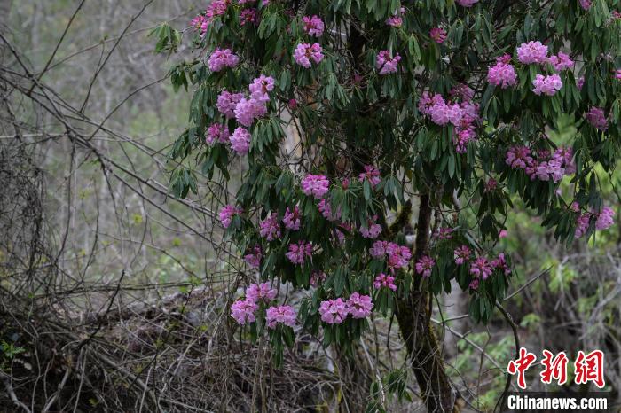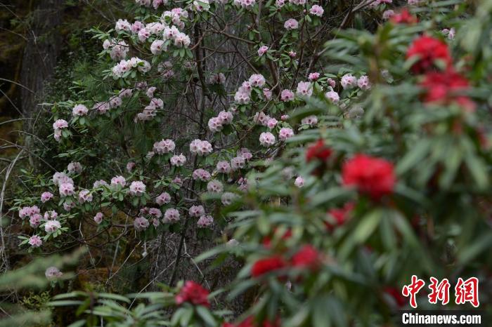 4月3日,西藏自治區林芝市波密縣野生杜鵑盛放,漫山遍野,匯成夢幻花海。這里品種多樣,有波密杜鵑、淡鐘杜鵑等。花朵色彩繽紛,粉紅嬌俏、玫紅熱烈、朱紅明艷、淺紫神秘。它們廣泛分布于山坡、河谷、森林,與雪山、溪流相互映襯,勾勒出絢麗的春日盛景 。中新社記者 貢嘎來松 攝