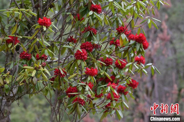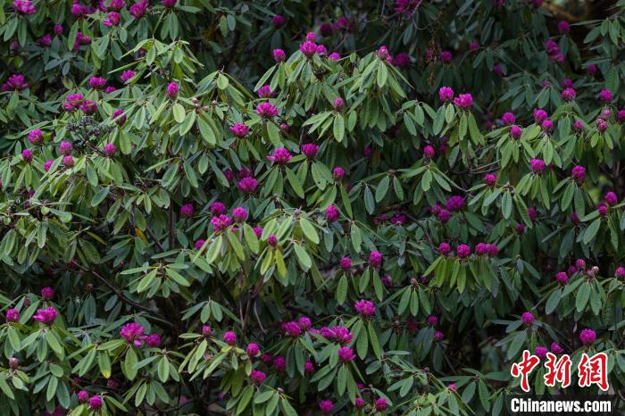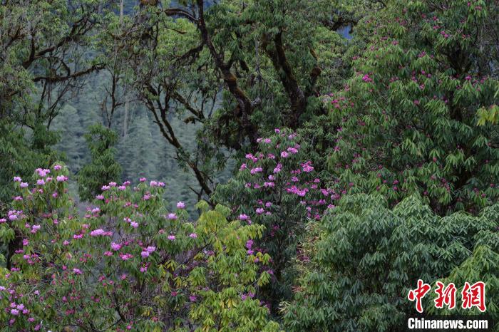 4月3日,西藏自治區林芝市波密縣野生杜鵑盛放,漫山遍野,匯成夢幻花海。這里品種多樣,有波密杜鵑、淡鐘杜鵑等?;ǘ渖世_紛,粉紅嬌俏、玫紅熱烈、朱紅明艷、淺紫神秘。它們廣泛分布于山坡、河谷、森林,與雪山、溪流相互映襯,勾勒出絢麗的春日盛景 。中新社記者 貢嘎來松 攝