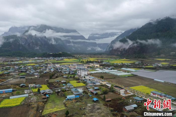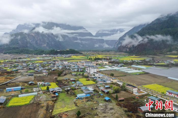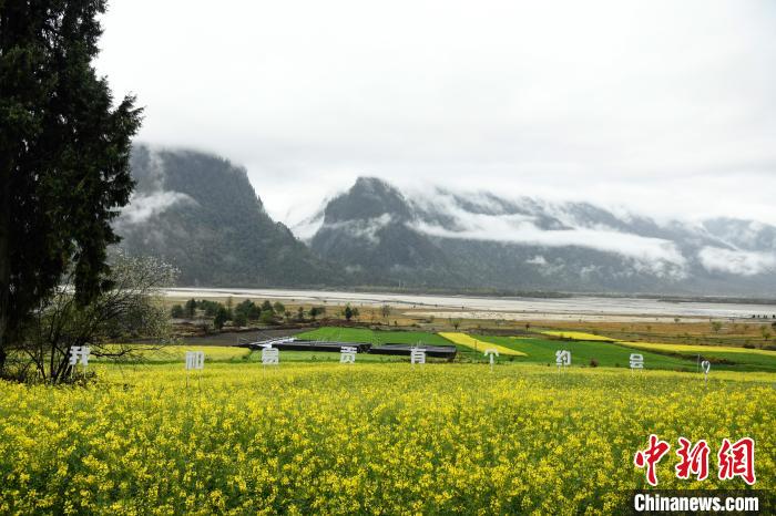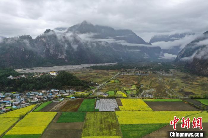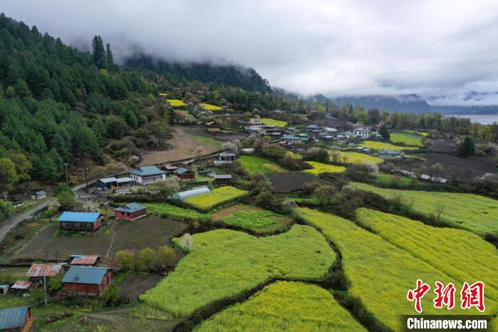 4月4日,西藏林芝市波密縣易貢鄉在雨后迎來絕美景致。云霧繚繞在群山之間,金黃的油菜花與森林、易貢湖、藏式民居、碧綠的青稞田相互映襯,宛如仙境。中新社記者 貢嘎來松 攝