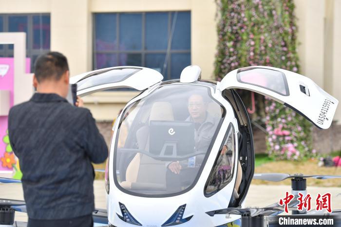 4月5日,西藏林芝第二十二屆桃花旅游文化節上,億航智能桃花載人無人機E-VTOL首次亮相海拔3000米高度,并成功首飛。首飛現場,無人機緩緩升空,引得市民、游客紛紛駐足仰望,降落之后,大家圍攏過來,近距離參觀體驗并拍照留念。據悉,億航智能已在國內合肥、杭州等地開展低空文旅項目,在全球19個國家,完成65000架次安全飛行。圖為市民游客近距離參觀載人無人機E-VTOL。貢確 攝