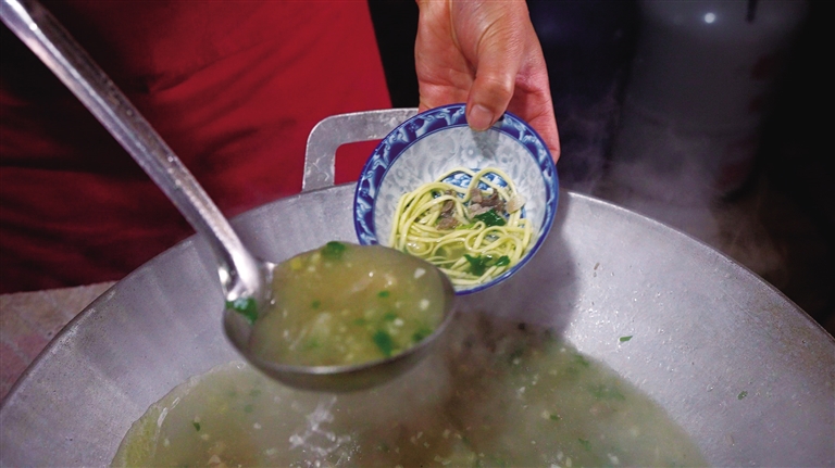 2010年,鹽井加加面被列入西藏自治區(qū)級(jí)非物質(zhì)文化遺產(chǎn)代表性名錄。37歲的果拉卓瑪,是這項(xiàng)技藝的傳承者之一。她回憶道,早年父母在街邊支攤賣面時(shí),加加面只是再尋常不過(guò)的一道家常面食。如今,這碗面被賦予了文化符號(hào)的意義——食客們比拼碗數(shù),最高紀(jì)錄達(dá)147碗,若破紀(jì)錄,還能終生免費(fèi)吃面。“石頭計(jì)數(shù)、民歌敬酒,這些傳統(tǒng)習(xí)俗讓吃面變成了一場(chǎng)熱鬧的儀式?!惫楷斝χf(shuō)。
