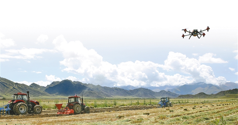 智能植保無人機在拉薩市林周縣助力農業生產。記者 白瑪澤旺 攝