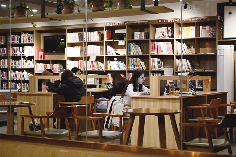 讀者在自治區(qū)圖書館“城市書屋”閱讀學(xué)習(xí)。