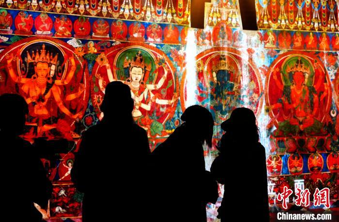 5月18日是第49個國際博物館日,今年的主題是“快速變化社會中的博物館未來”,西藏博物館迎來參觀熱潮。圖為觀眾在西藏博物館內欣賞阿里古格經典壁畫數字化成果展。中新社記者 李林 攝
