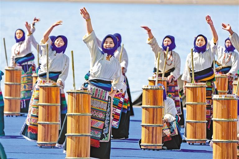 開湖日歌舞表演現場。記者 阿旺尼瑪 貢曲羅杰 攝