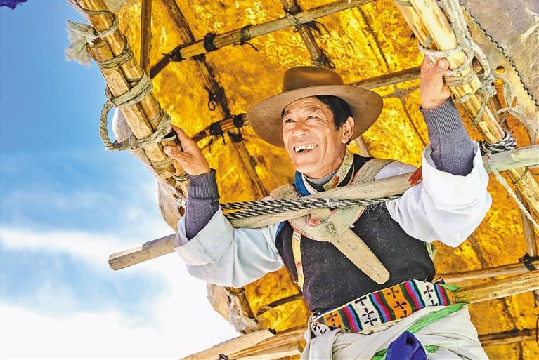 曲水縣群眾展示牛皮船。記者 阿旺尼瑪 貢曲羅杰 攝