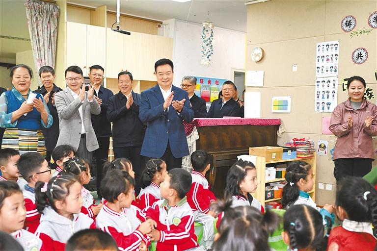 “六一”國際兒童節(jié)到來之際,自治區(qū)黨委書記王君正在拉薩調(diào)研少年兒童教育教學和少先隊工作。這是王君正來到自治區(qū)實驗幼兒園,了解特色課程開展情況。本報記者 旦增西旦 攝