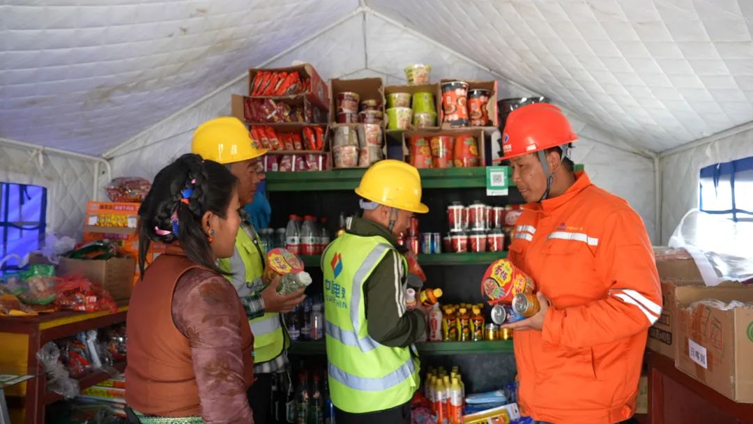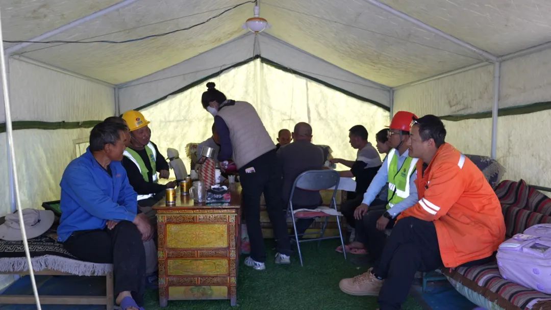 茶館主人巴桑,是村里有名的熱心人。看著施工人員為重建家園奔波,采購物資不便,她果斷在項目部生活區旁開起小賣鋪。與工人們熟絡后,她又搬來桌椅,搭起簡易帳篷茶館,只為給異鄉人一個歇腳放松之處。