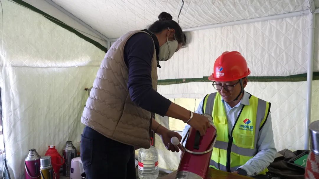 中國電建的楊磊技術精湛,是工地骨干;村民頓珠熟悉鄉土,是村民主心骨。雖有年齡差,但工作中的相互學習與默契配合,讓兩人成了忘年交。東北小伙董玉亮負責項目安全和用工,他急切地對頓珠說:“吉雄自然村明天需要2個小工和一臺挖掘機,請村委會幫我協調一下。”“放心,人和機械明天一早一定準時到。”頓珠立即電話安排,讓董玉亮安心。巴桑也趕忙為董玉亮倒上他最愛的酥油茶。