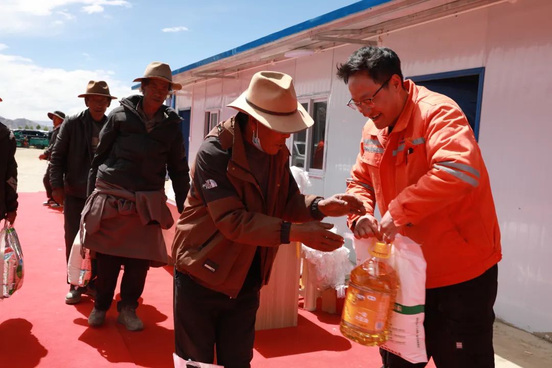 村民的熱情溫暖著施工人員。他們也想著回饋,端午節,項目部工作人員送上米面油等生活必需品,表達對村民的感激與重建決心,真摯情感讓人心連心。