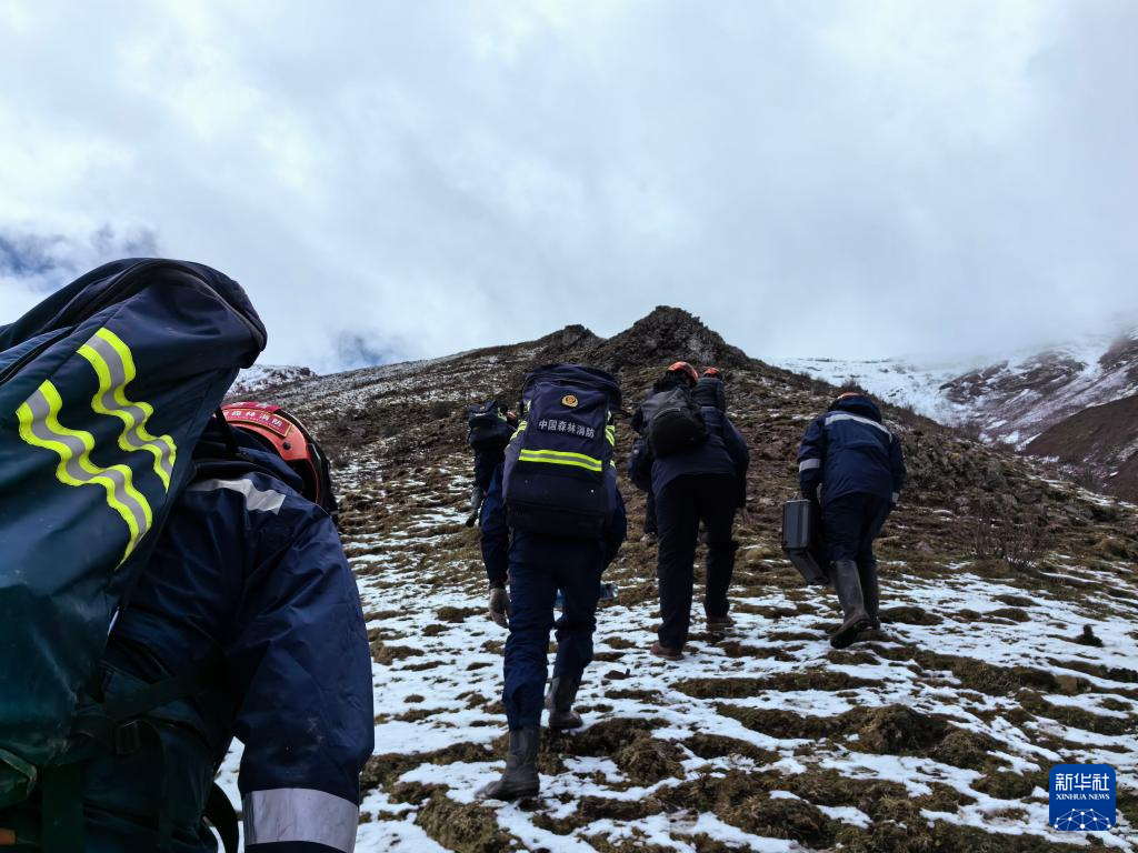 這是6月3日拍攝的森林消防戰士陪同專家組前往現場勘測。新華社發