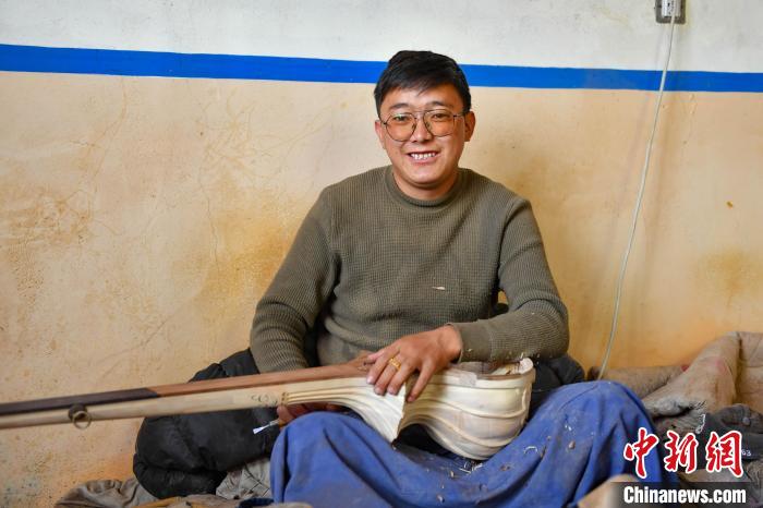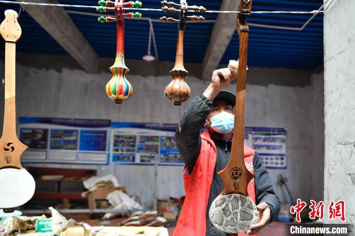 6月14日,記者走進西藏自治區日喀則市拉孜縣熱薩鄉,探訪中國國家級非物質文化遺產“扎念琴制作技藝”的具體制作過程。扎念琴,又名六弦琴,是西藏傳統歌舞“堆諧”中最常用的彈撥樂器。扎念,藏語意為“悅耳動聽之聲”。在西藏,扎念琴深受廣大群眾喜愛。2014年,“扎念琴制作技藝”入選第四批中國國家級非物質文化遺產代表性項目名錄。據了解,扎念琴制作共有5道基本程序:第一步,將整根木材掏空,做成共鳴箱;第二步,制作中間空心的琴桿,裝上名為“卡杺”的面板;第三步,雕刻“馬頭”或“龍頭”形狀的琴頭,安裝在琴桿頂部;第四步,制作附在琴頭、呈半圓形、向后彎曲且中間開有弦槽的扎念弦軸。最后一步,挑選羊腸、牛筋、絲線等不同材料來制作琴弦。扎念琴制作技藝的特別之處在于,為了琴身的美觀,初制后還要通過雕刻馬頭、龍頭、火焰等形狀作為裝飾,讓扎念琴更具特色。圖為制作完成的扎念琴。貢確 攝