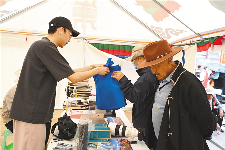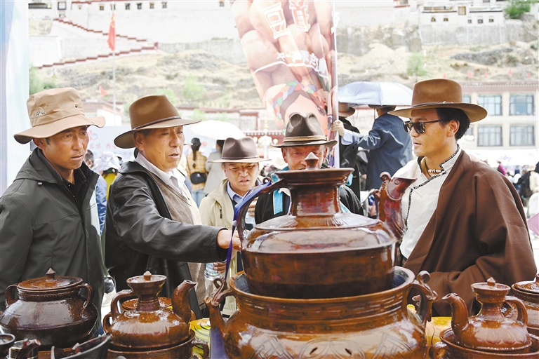 在欣賞視聽盛宴的同時,國家級非遺項目江孜卡墊織造技藝、自治區級非遺項目牛村陶器制作技藝、市級非遺項目恰哇編織技藝等50個非遺項目,以及民族手工業產品、南木林縣縣級非遺產品集中展覽展銷,備受消費者青睞。各非遺產品展銷點收入不斷、訂單不斷,經初步統計,活動現場非遺產品銷售總額達45萬余元。