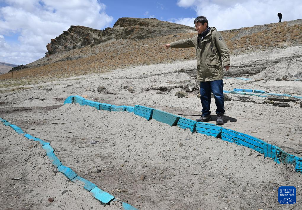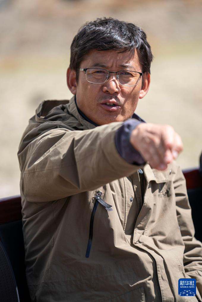 5月22日,聯(lián)合考古隊(duì)領(lǐng)隊(duì)夏格旺堆在瑪不錯(cuò)遺址向記者介紹考古發(fā)掘情況。新華社記者 旦增尼瑪曲珠 攝