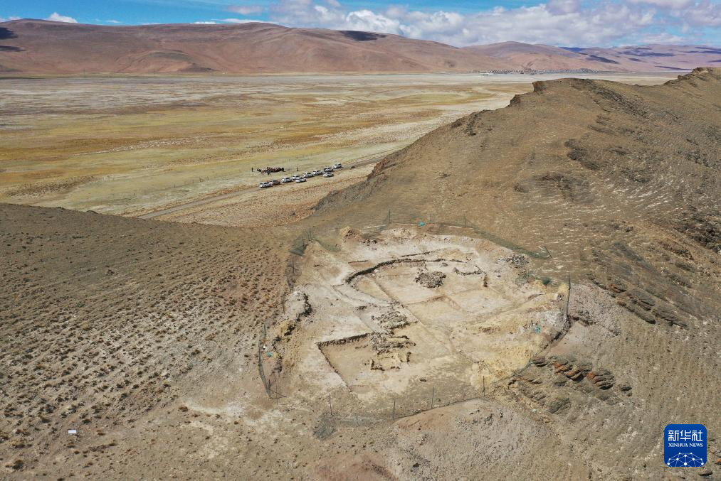 這是5月22日拍攝的瑪不錯(cuò)遺址第四期地面石構(gòu)建筑考古發(fā)掘現(xiàn)場(chǎng)(無(wú)人機(jī)照片)。新華社記者 李賀 攝