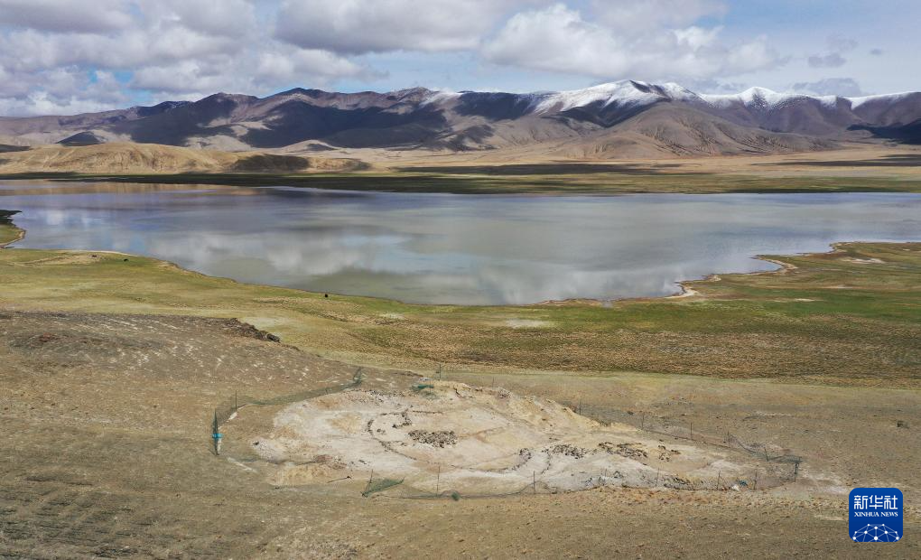 這是5月22日拍攝的坐落在瑪不錯(cuò)湖畔的遺址第四期石構(gòu)地面建筑考古發(fā)掘現(xiàn)場(chǎng)(無(wú)人機(jī)照片)。新華社記者 李賀 攝