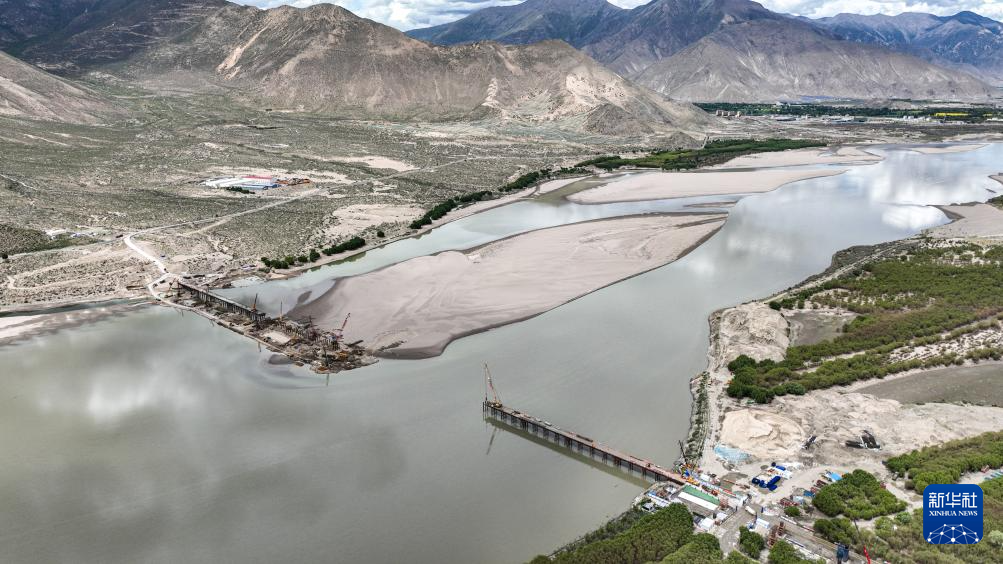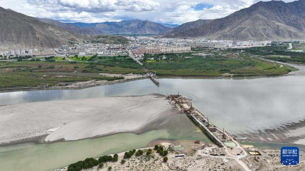 薩熱路跨江大橋位于西藏山南市乃東區,是山南市"十四五"重大市政基礎設施項目。6月18日,第一片箱梁養護強度達到設計標準,大橋建設進入架梁施工階段。260余名施工人員日夜奮戰在鋼棧橋和兩岸的橋梁結構建設中。