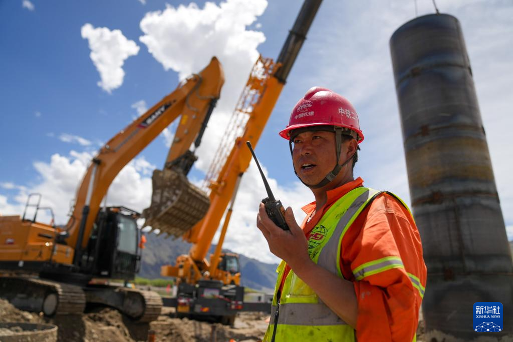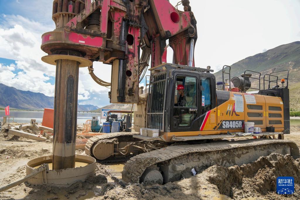 工人在進行樁基機械成孔作業(6月18日攝)。新華社記者 晉美多吉 攝