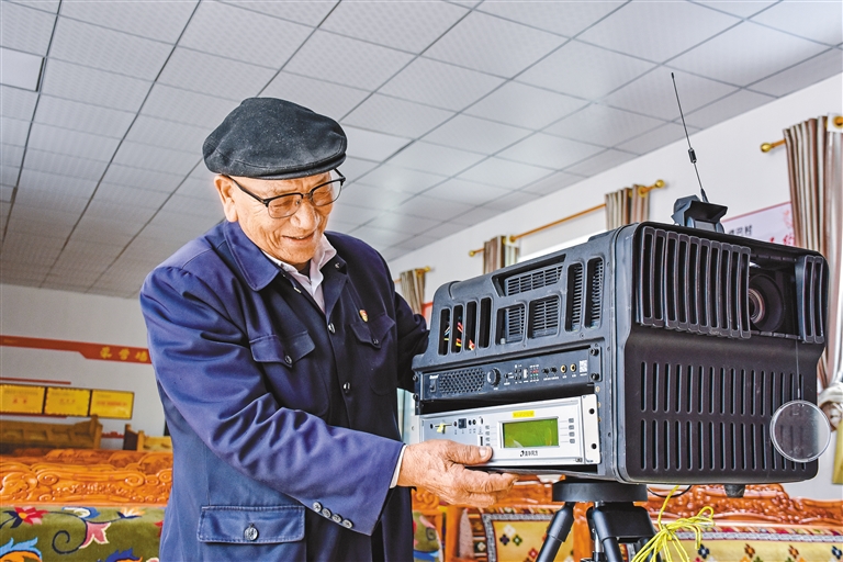“電影放完了,大家都還舍不得走,有些村民開玩笑,假意不讓我帶走放映機,請求我放第二場、第三場。他們喜歡看,我也樂意放,多的時候,一天要連續放四場。其中最受歡迎的就屬《南征北戰》《戰上海》這類戰斗片、抗戰片了。”說話間,仁真平措黝黑的臉頰紅暈泛開來,笑容里滿是對往昔的回憶。