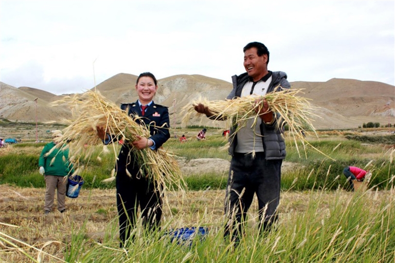 普蘭縣稅務干部走進田間地頭,助力秋收工作。