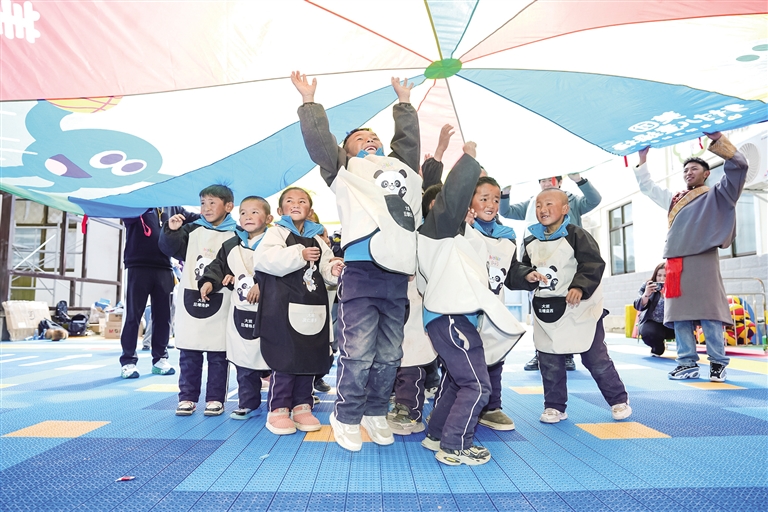 “老師快看!這里有跑道和斑馬線,太漂亮啦!”定日縣長所鄉幼兒園的拉巴次仁第一次踏上新落成的“太陽花”操場,興奮地邊跑邊向老師展示。據記者了解,此前孩子們在破損的懸浮地板上活動時經常摔倒,遇上雨雪天氣,戶外活動也只能取消。