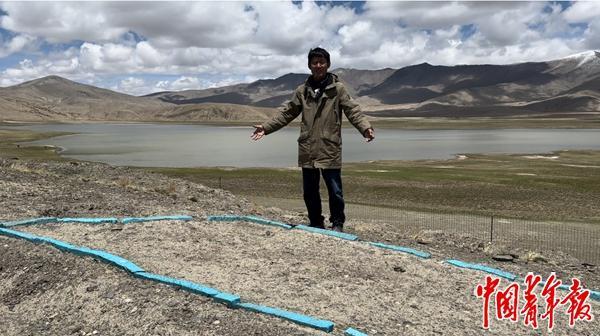 夏格旺堆在瑪不錯遺址。中青報·中青網記者 張玘云/攝